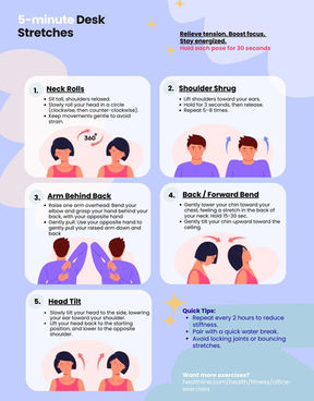 3. 5-Minute Desk Stretches: A visual aid promoting wellness and productivity through simple movement strategies.